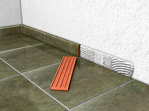 Plinthe céramique de grès porcelainé, capacité d'absorption en eau E<0,5%, groupe BIa, 7,5x30 cm et 7 mm d'épaisseur, style marbre "TAU CERÁMICA", placée avec adhésif cémenteux amélioré, C2 TE, avec glissement réduit et temps ouvert augmenté T100 Super "TAU CERÁMICA" et jointoyée avec mortier technique coloré, C G2, Line-Fix "TAU CERÁMICA", pour jointoiement des carreaux céramiques, avec des joints compris entre 3 et 15 mm. |