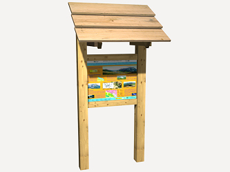 Panneau indicateur de circuit d'exercices physiques à l'air libre, en bois de pin sylvestre, traité en autoclave, avec classe d'emploi 4 selon NF EN 335, terminée avec un vernis protecteur, constitué de deux poteaux de 0,15 m de côté et 2,15 m de hauteur visible, avec petit toit et planche contreplaquée phénolique de 0,90x0,70 m, avec visserie en acier galvanisé, cachée et protégée avec des caches-vis de sécurité, fixé à une base de béton BCN: CPJ-CEM II/A 32,5 - P - B 20 - 15/25 - E: 1 - NA - P 18-305. Comprend l'implantation, excavation manuelle du terrain et la fixation de l'élément.
