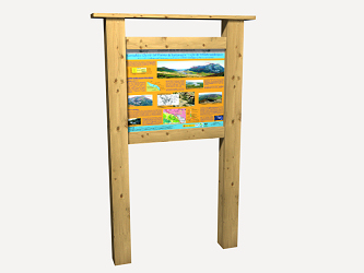 Panneau indicateur de circuit d'exercices physiques à l'air libre, en bois de pin sylvestre, traité en autoclave, avec classe d'emploi 4 selon NF EN 335, terminée avec un vernis protecteur, constitué de deux poteaux de 0,15 m de côté et 2,15 m de hauteur visible, et planche contreplaquée phénolique de 0,90x0,70 m, avec visserie en acier galvanisé, cachée et protégée avec des caches-vis de sécurité, fixé à une base de béton BCN: CPJ-CEM II/A 32,5 - P - B 20 - 15/25 - E: 1 - NA - P 18-305. Comprend l'implantation, excavation manuelle du terrain et la fixation de l'élément.